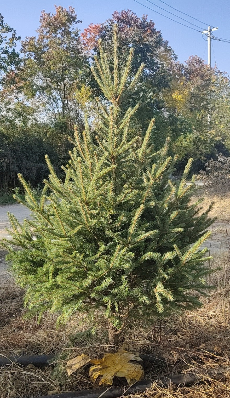The picture on the right is a 1.5 metre fresh tree ready to be sent to a happy customer. These are the same type of tree we grew up with in the Cotswolds, in England.