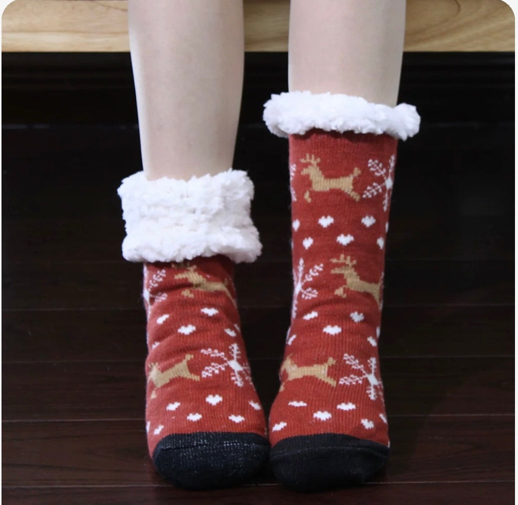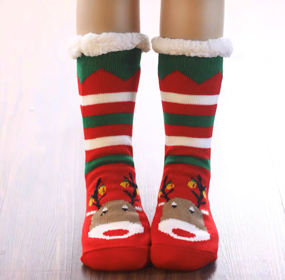 Snuggly warm fleece-lined Christmas slipper socks for wearing at home while enjoying your real Christmas tree! Perfect for HK Winter. A lovely Christmas gift to your loved ones!